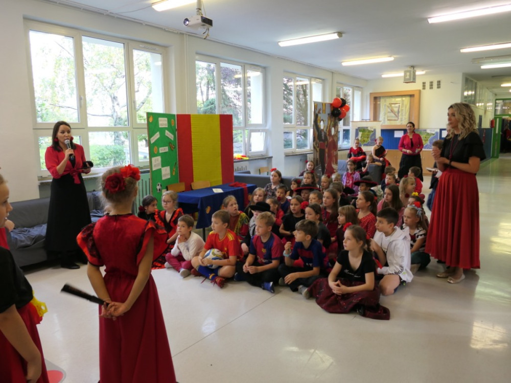 Wydarzenie rozpoczęło się od barwnej parady, podczas której każda z klas w pomysłowy sposób reprezentowała wybrane miasto Hiszpanii. Kolorowy korowód wprowadził wszystkich w prawdziwie gorący, iberyjski nastrój!