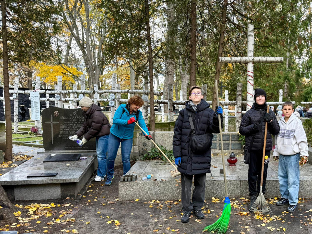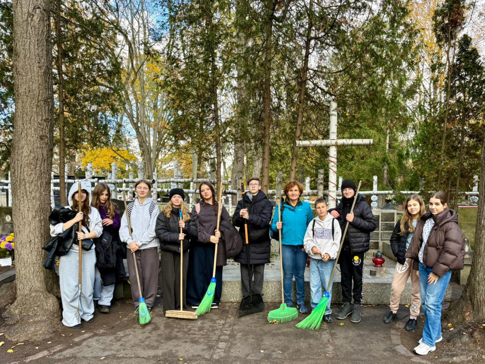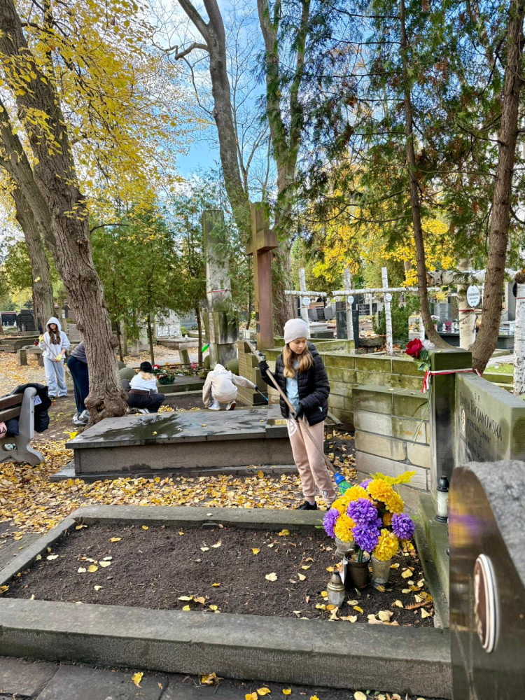 W dniu 26 października 2025 roku uczniowie-wolontariusze ze Szkoły Podstawowej nr 285 w Warszawie wzięli udział w akcji porządkowania grobów żołnierzy Armii Krajowej na Cmentarzu Wojskowym na Powązkach.