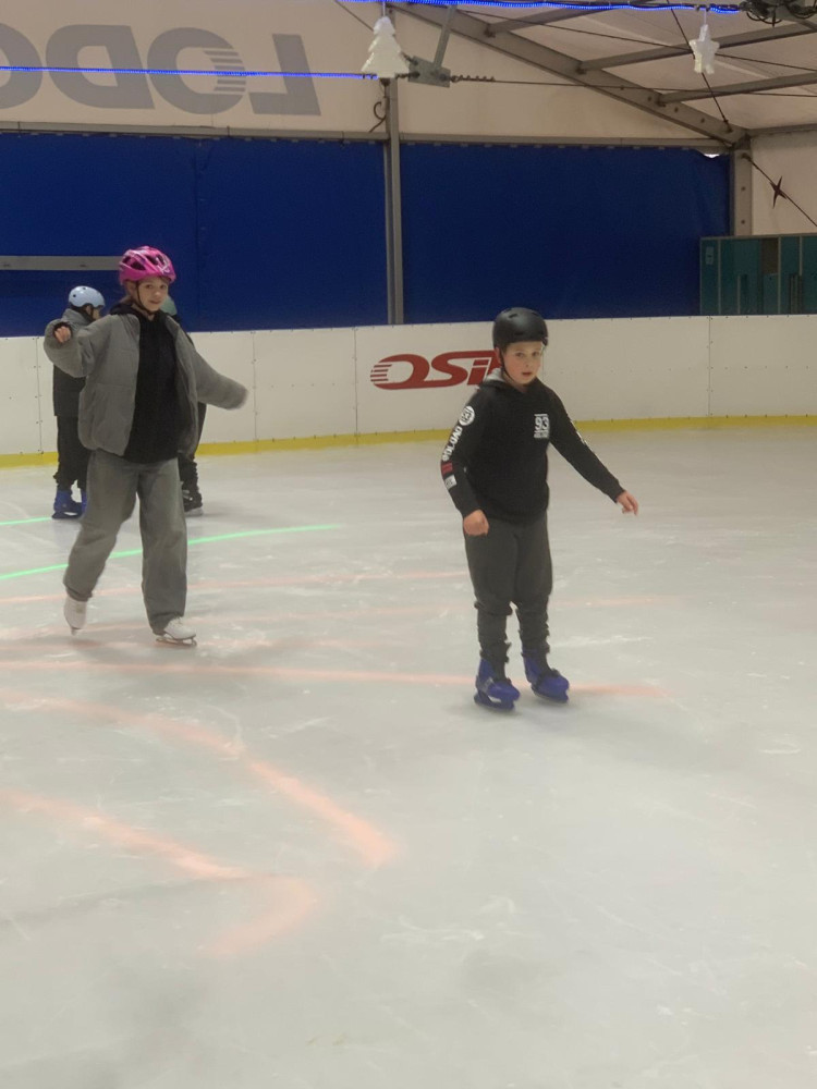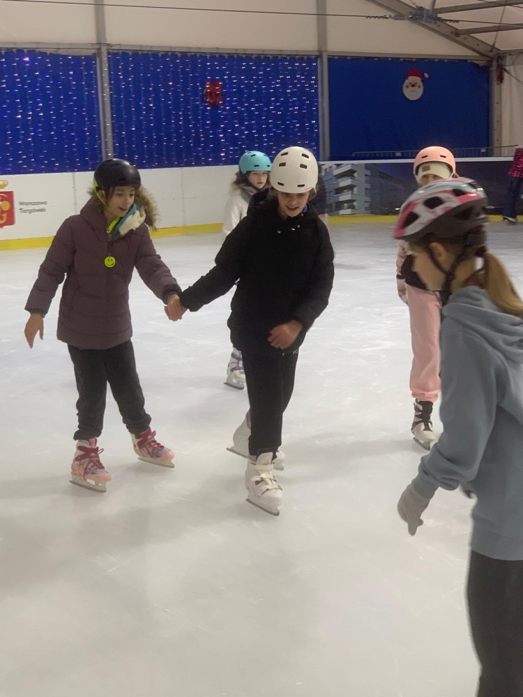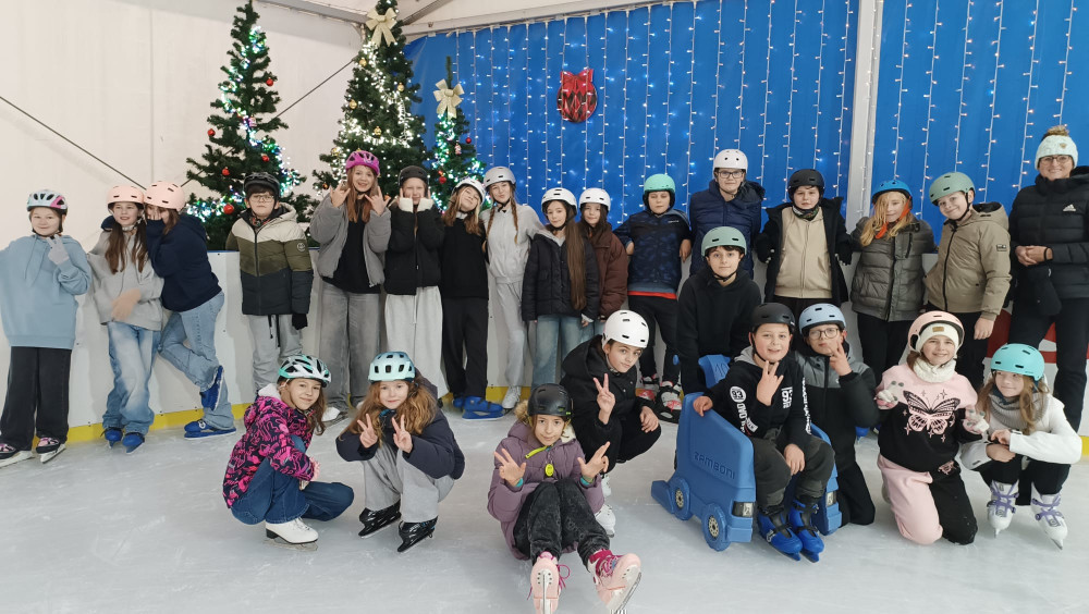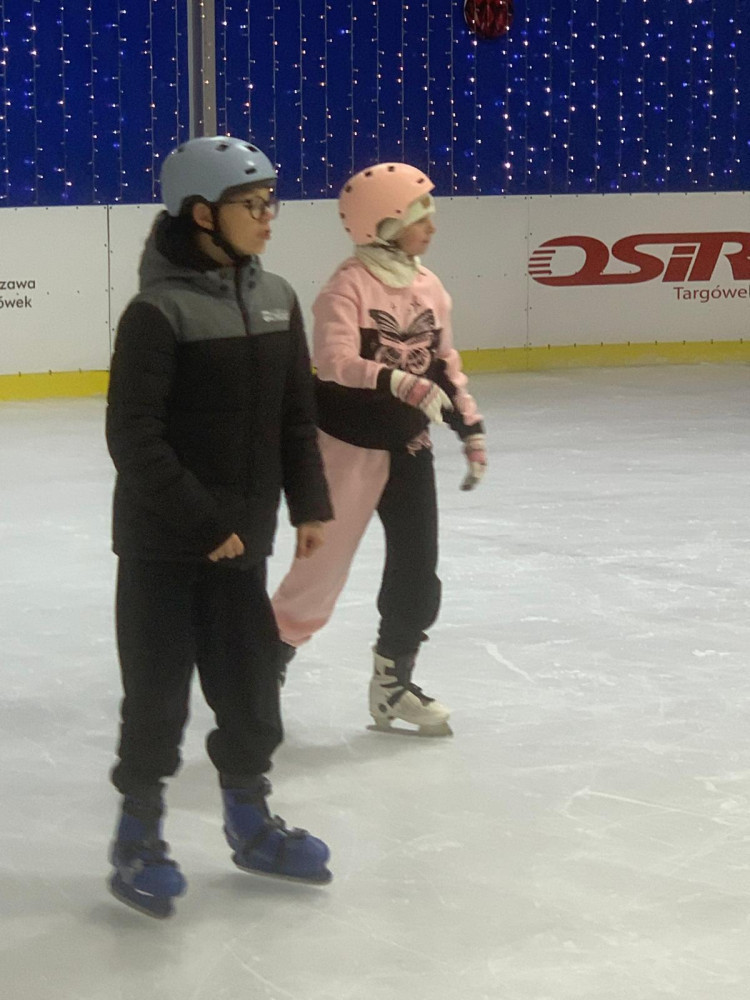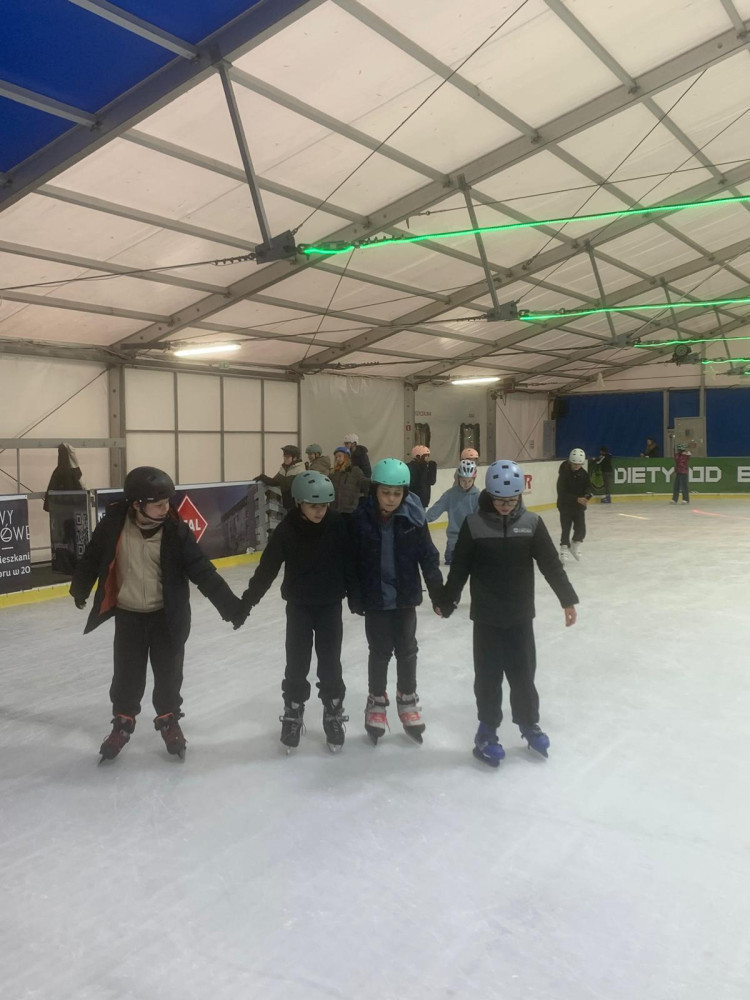 W ten wyjątkowy mikołajkowy czas klasa 5c wybrała się na pełne emocji lodowisko! Uczniowie mieli okazję sprawdzić swoje umiejętności na łyżwach, a wielu z nich z uśmiechem na twarzy doskonaliło swoje piruety i hamowanie. Było to idealne połączenie sportu, zabawy i zimowej atmosfery.
