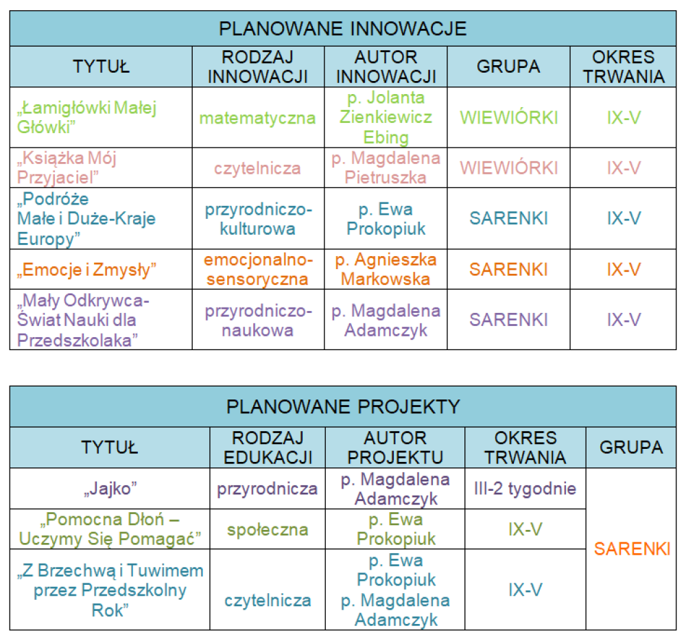 • Kolory dnia – pomagają dzieciom rozpoznawać emocje i nastroje.